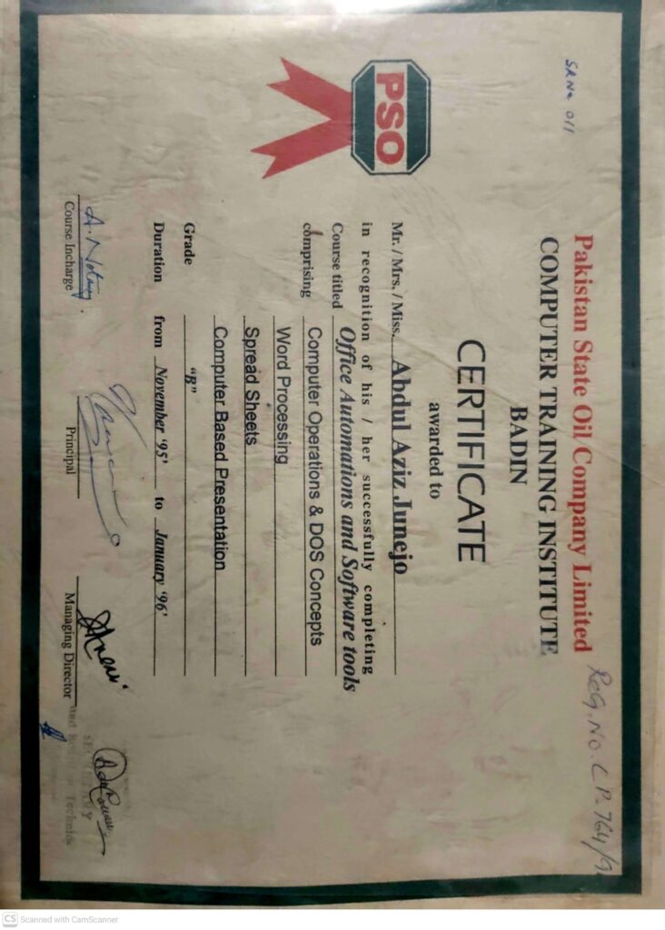 Computer Traning Institute Badin Certificate
