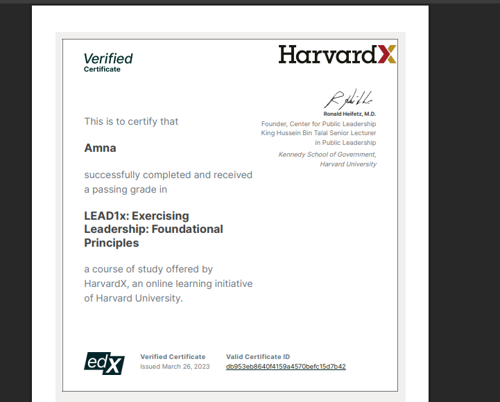HarvardX LEAD1x Certificate
