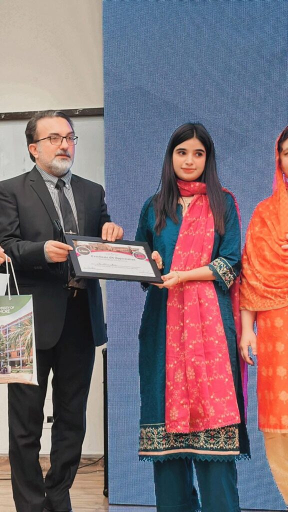 She completed a Bachelor of Business Administration (BBA) from the University of Lahore in 2023.