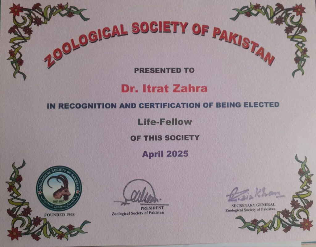 Zoological Society of Pakistan Certificate