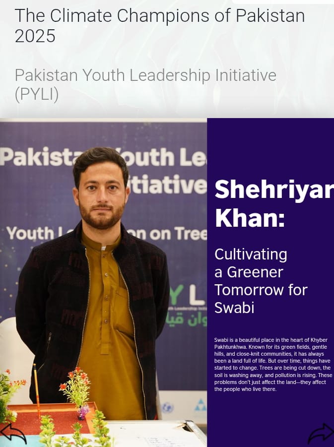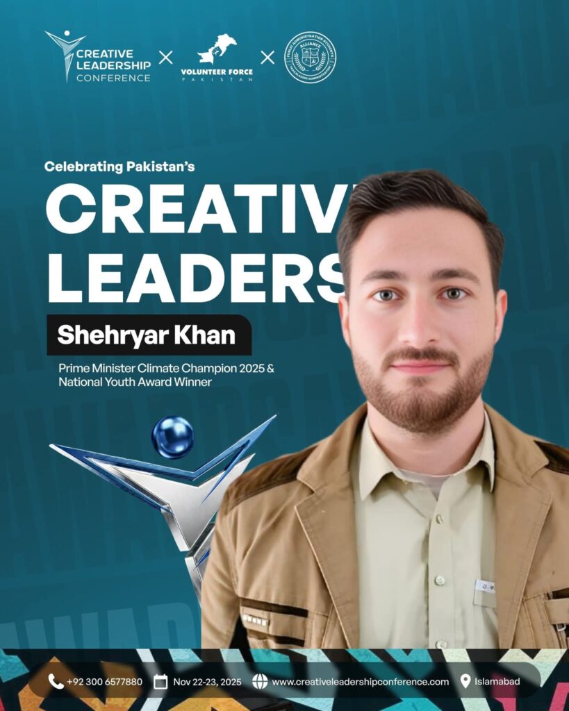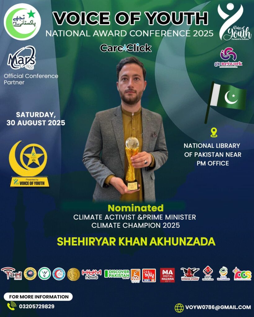 Shehiryar Khan selected among top 5 changemakers from Khyber Pakhtunkhwa for Pride of KP Awards 2025 for climate action and digital storytelling.